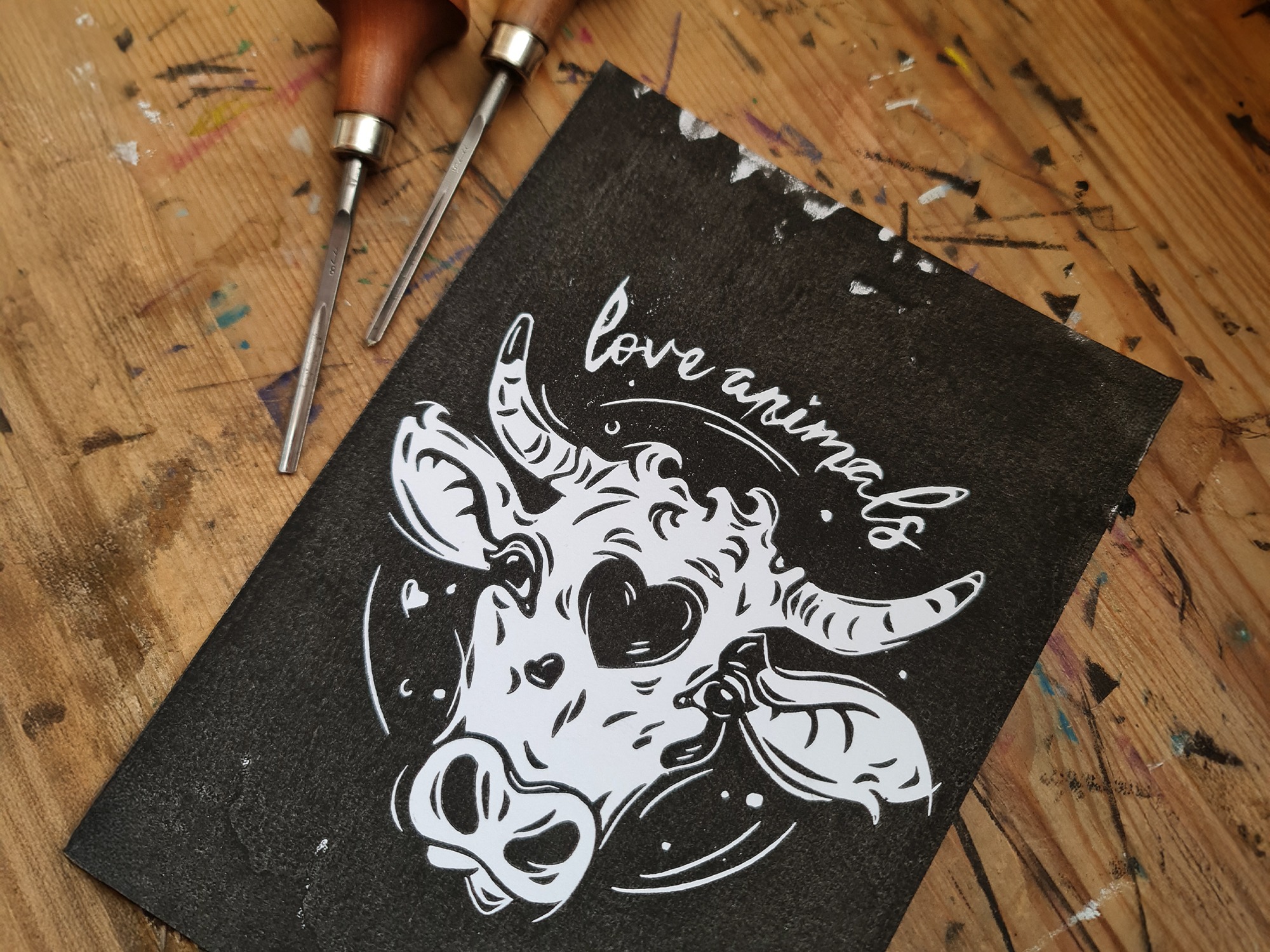 Handgemacht mit Linoldruck