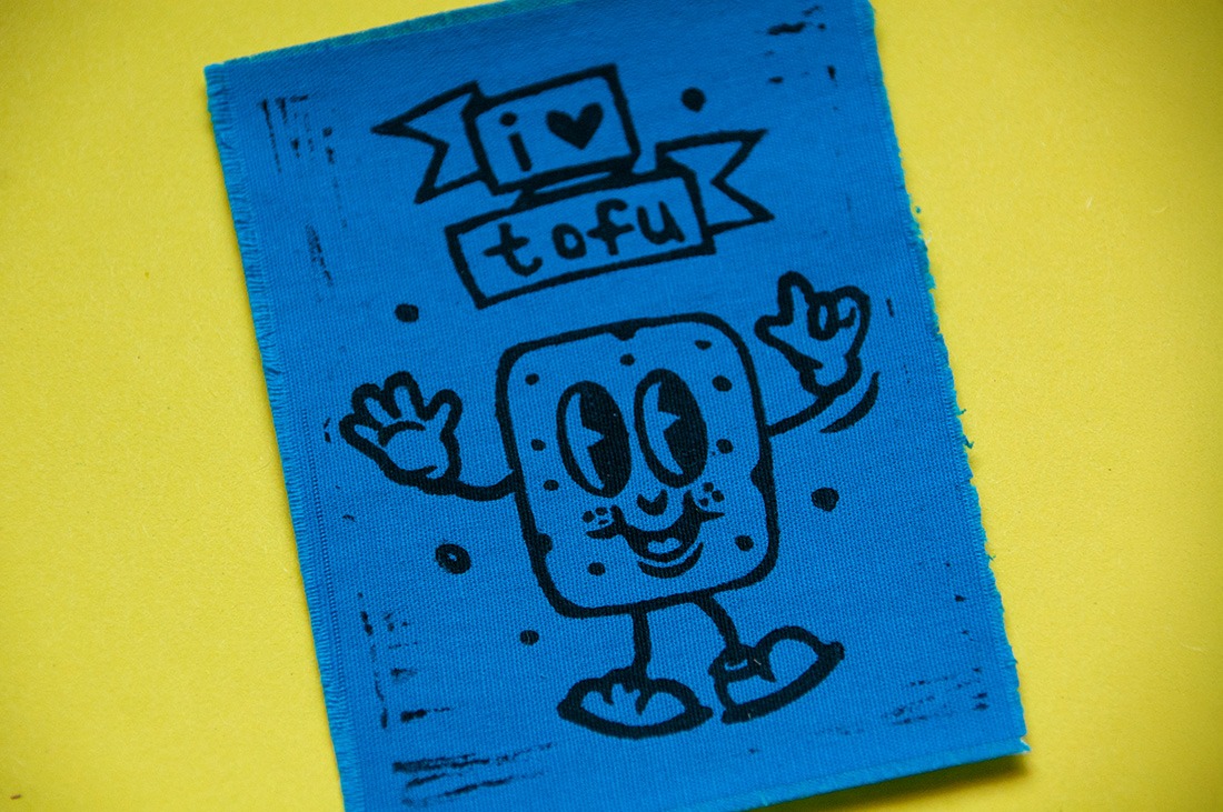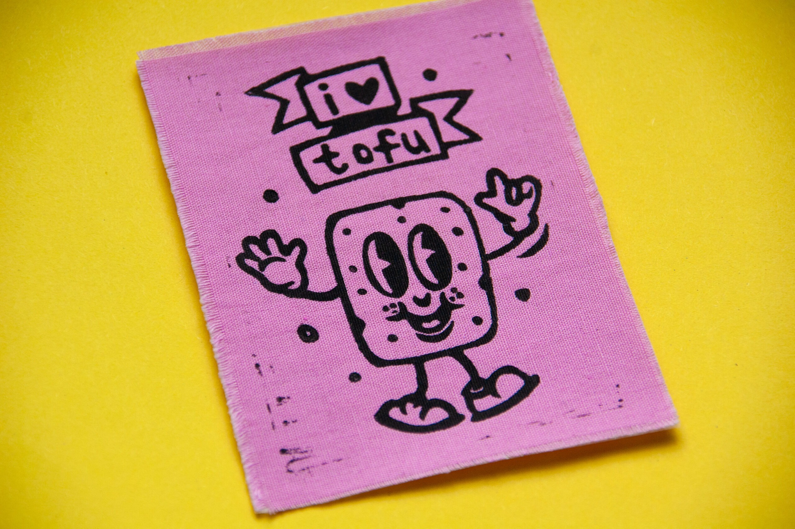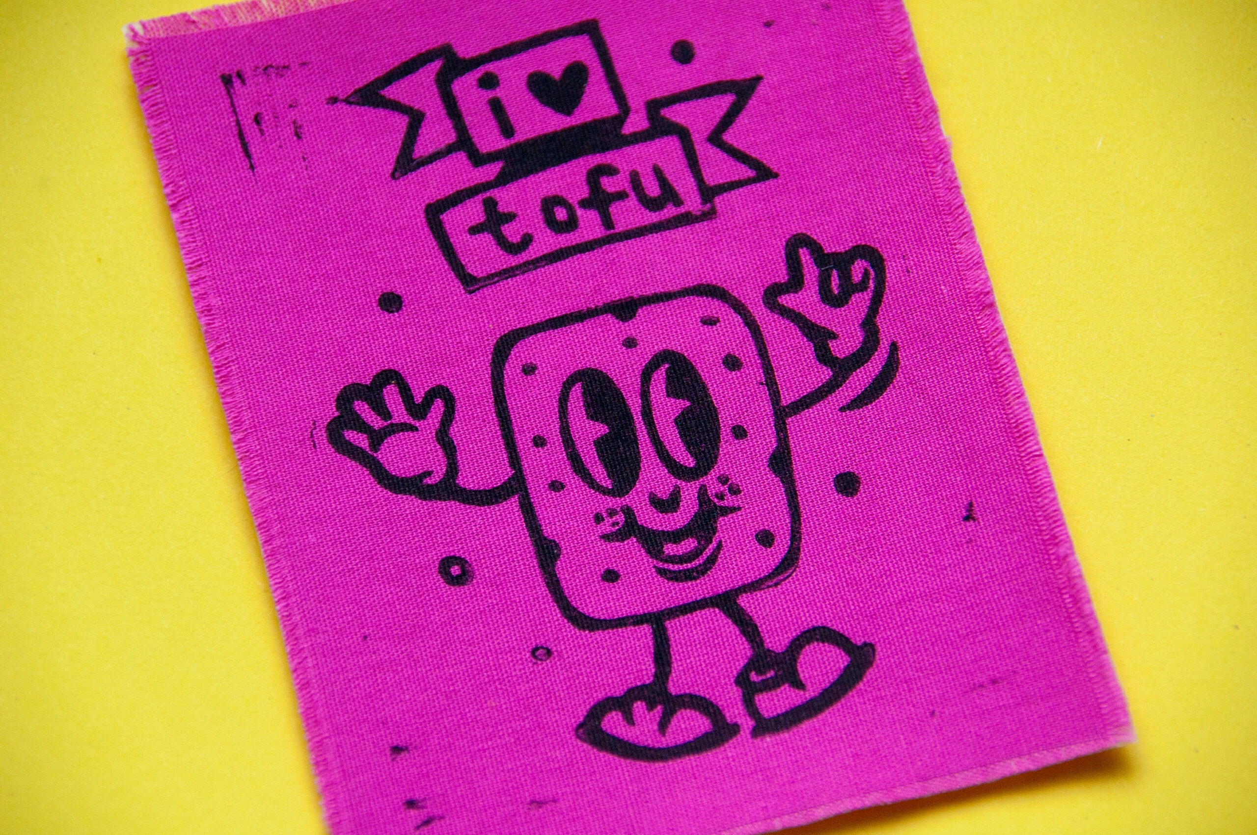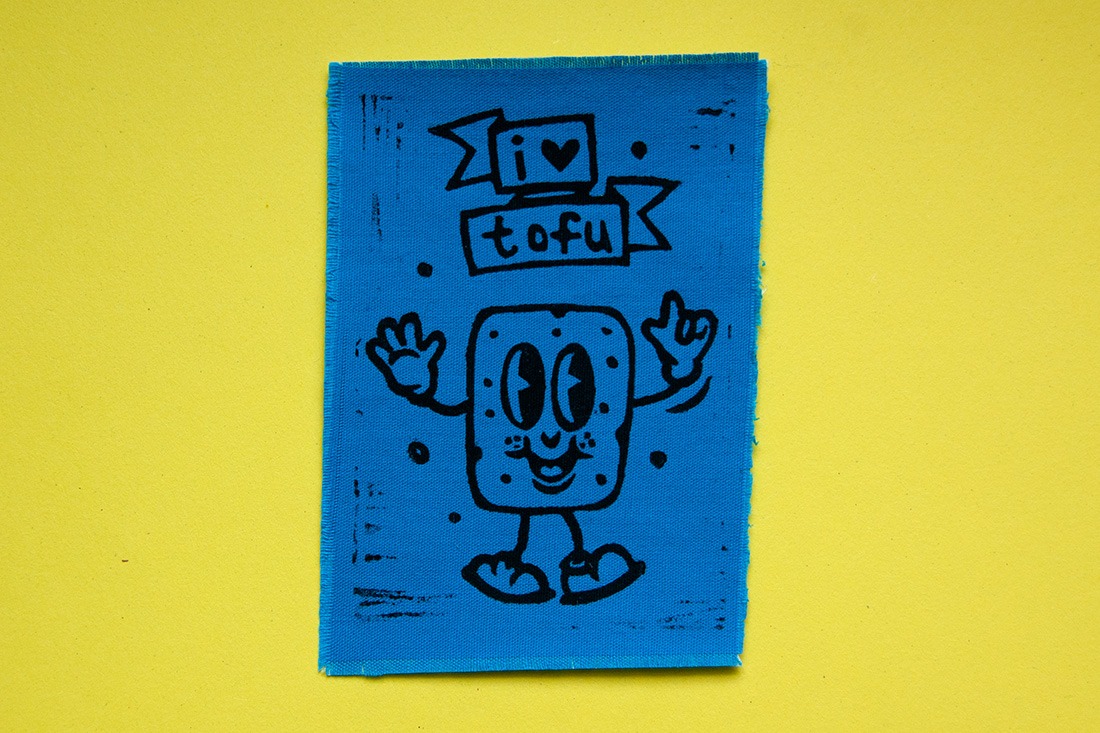 Manchmal reicht ein kleiner Patch, um zu zeigen, was man liebt. Dieser handgedruckte Stoffaufnäher ist genau so ein Statement. Bunt, verspielt und fröhlich: eine kleiner Comic-Tofu mit dem Schriftzug „I Love Tofu“. Mit diesem Patch setzt du ein fröhliches und witziges Zeichen – nachhaltig und handgemacht.