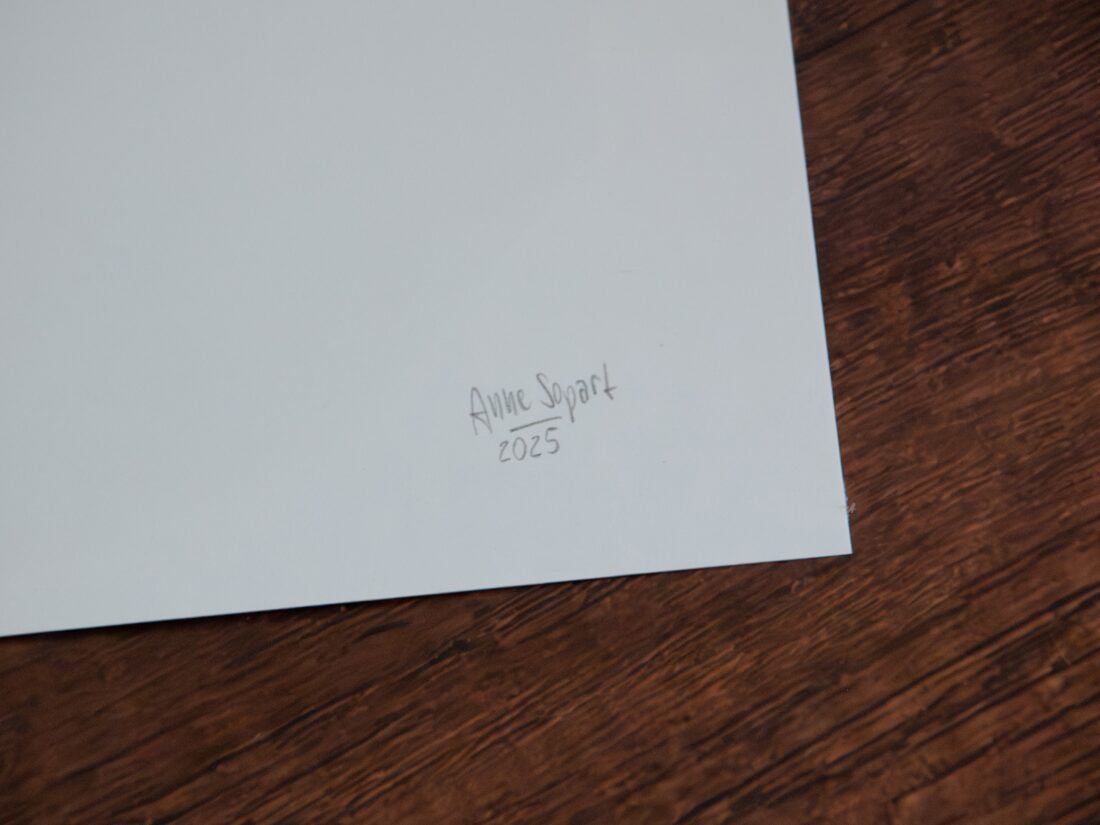 Damit kein störendes Element vom Motiv ablenkt, signiere ich meine Drucke auf der Rückseite.