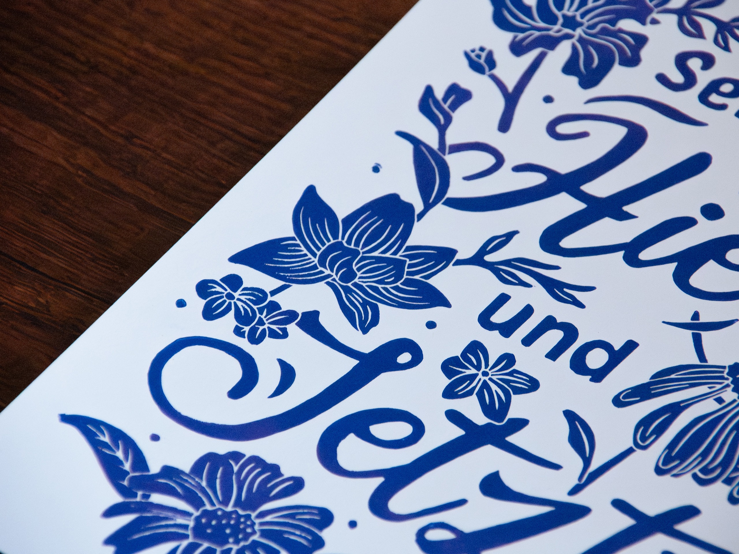 Das Besondere an diesem Kunstwerk: Jeder einzelne Druck wurde von Hand auf umweltfreundlichem Papier erstellt. Die Technik des Linolschnitts ist ein klassisches Hochdruckverfahren, bei dem ich das Motiv in eine Linolplatte schnitze. Was stehen bleibt, wird gefärbt und auf das Papier gepresst – eine Technik, die Konzentration, Präzision und künstlerisches Gespür verlangt. Der Druckvorgang erfolgt von Hand mit Druckpresse, nicht digital oder maschinell. Durch die kleinen Differenzen in Farbe und Textur erhältst du mit diesem Druck ein ganz besonderes Unikat. Keine industrielle Vervielfältigung, sondern echte Handarbeit, echte Kunst.