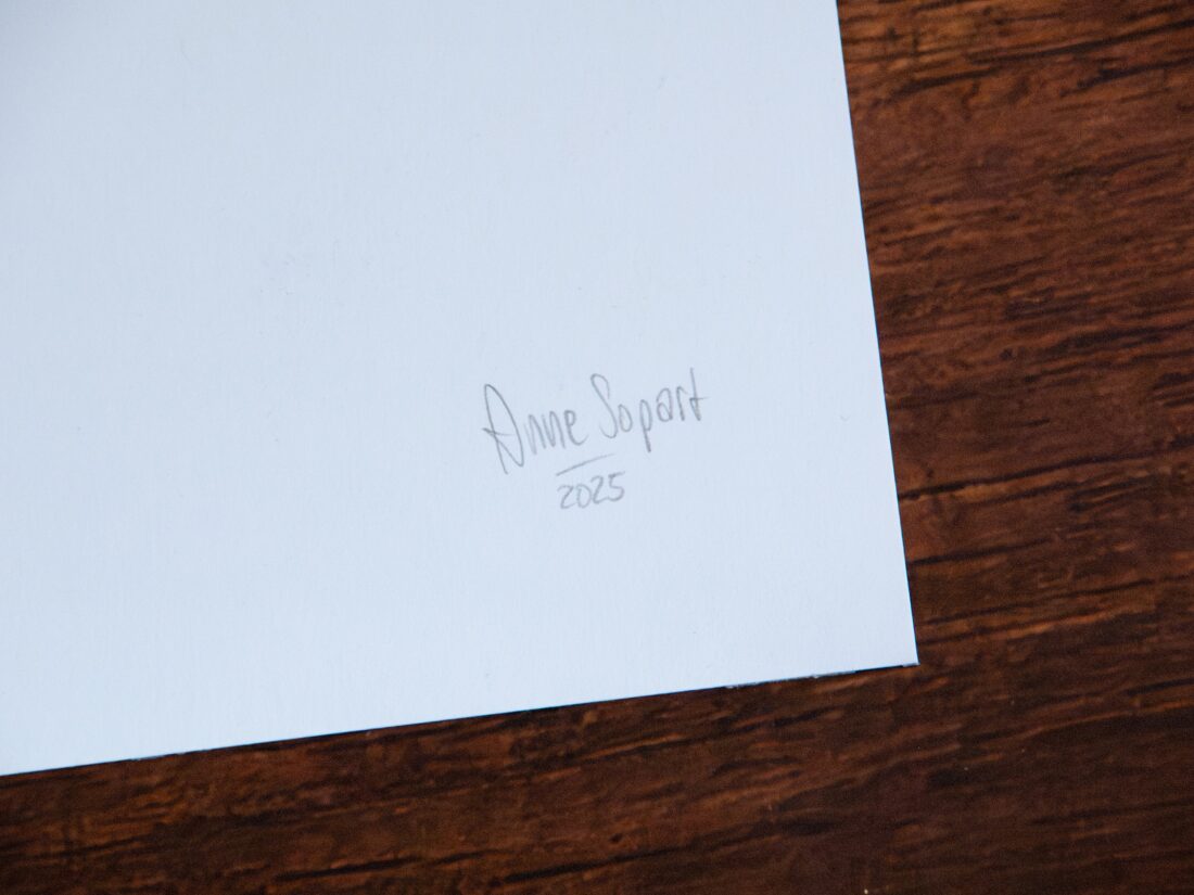 Jeder Druck wird auf der Rückseite signiert, damit nichts von ihm ablenkt. Der Versand erfolgt in einem stabilen Umschlag. So kommt dein Kunstwerk sicher und unversehrt bei dir an.