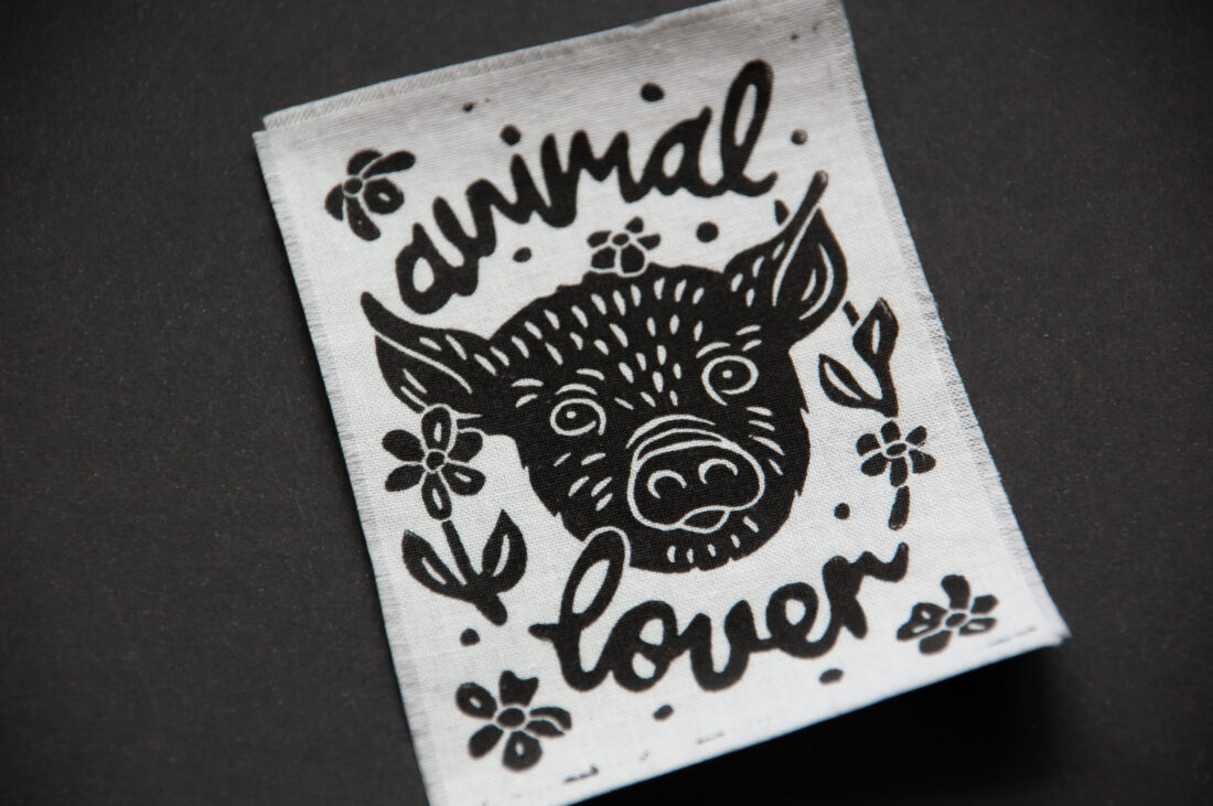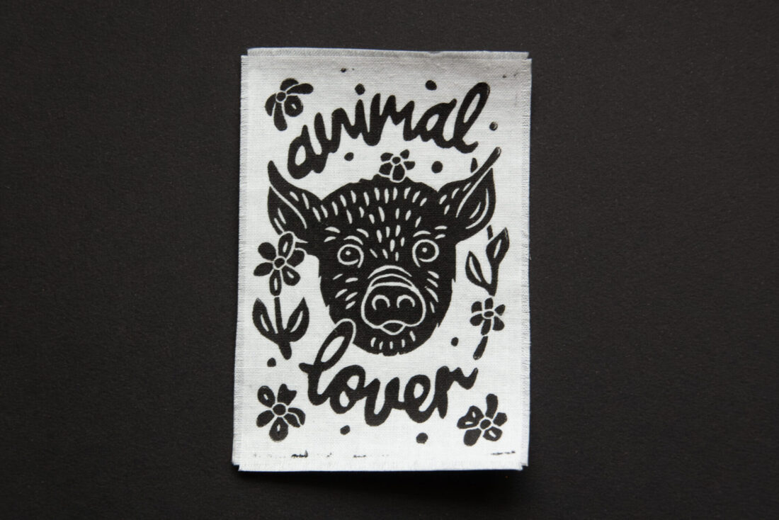 Manchmal reicht ein kleiner Patch, um zu zeigen, wofür man steht. Dieser handgedruckte Stoffaufnäher ist genau so ein Statement. Schwarz auf Weiß, klar und ehrlich: ein kleines, liebevoll gestaltetes Schweinegesicht, umrahmt von ein paar Blumen, dazu der Schriftzug „Animal Lover“. Mit diesem Patch setzt du ein kleines, aber starkes Zeichen – nachhaltig und handgemacht.