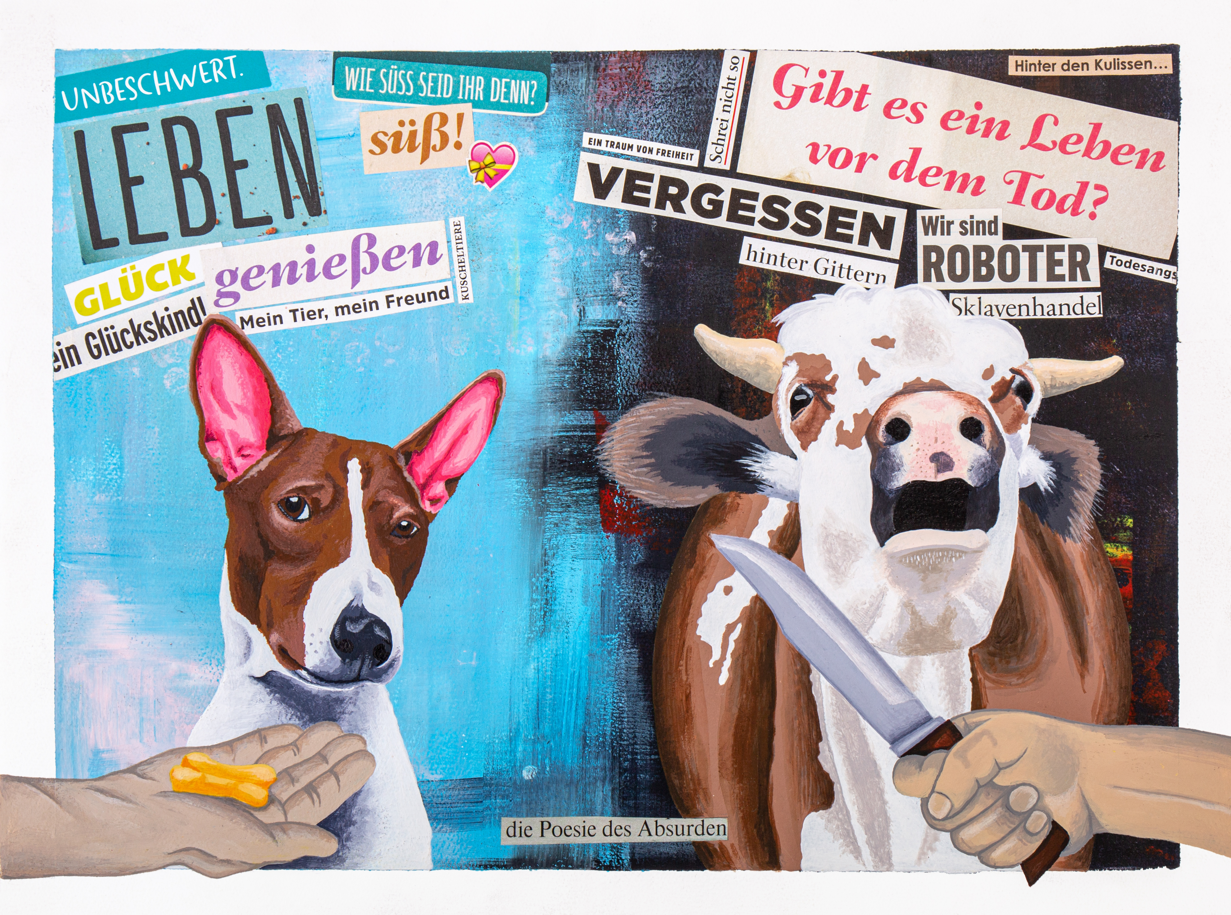 Tierrechts-Kunst ist eine Leidenschaft von mir. Auf dieser Seite findet ihr Bilder zum Thema Tierrechte und Veganismus, die kostenlos privat (nicht kommerziell) unter Namensnennung verwendet werden dürfen. Solltet ihr ein Tierrechts-Projekt planen, stelle ich euch nach schriftlicher Absprache von der Namensnennung frei. Die Bearbeitung und der Weiterverkauf der hier abgebildeten Werke sind untersagt. Über einen Hinweis über eure Verwendung der Bilder freue ich mich sehr.